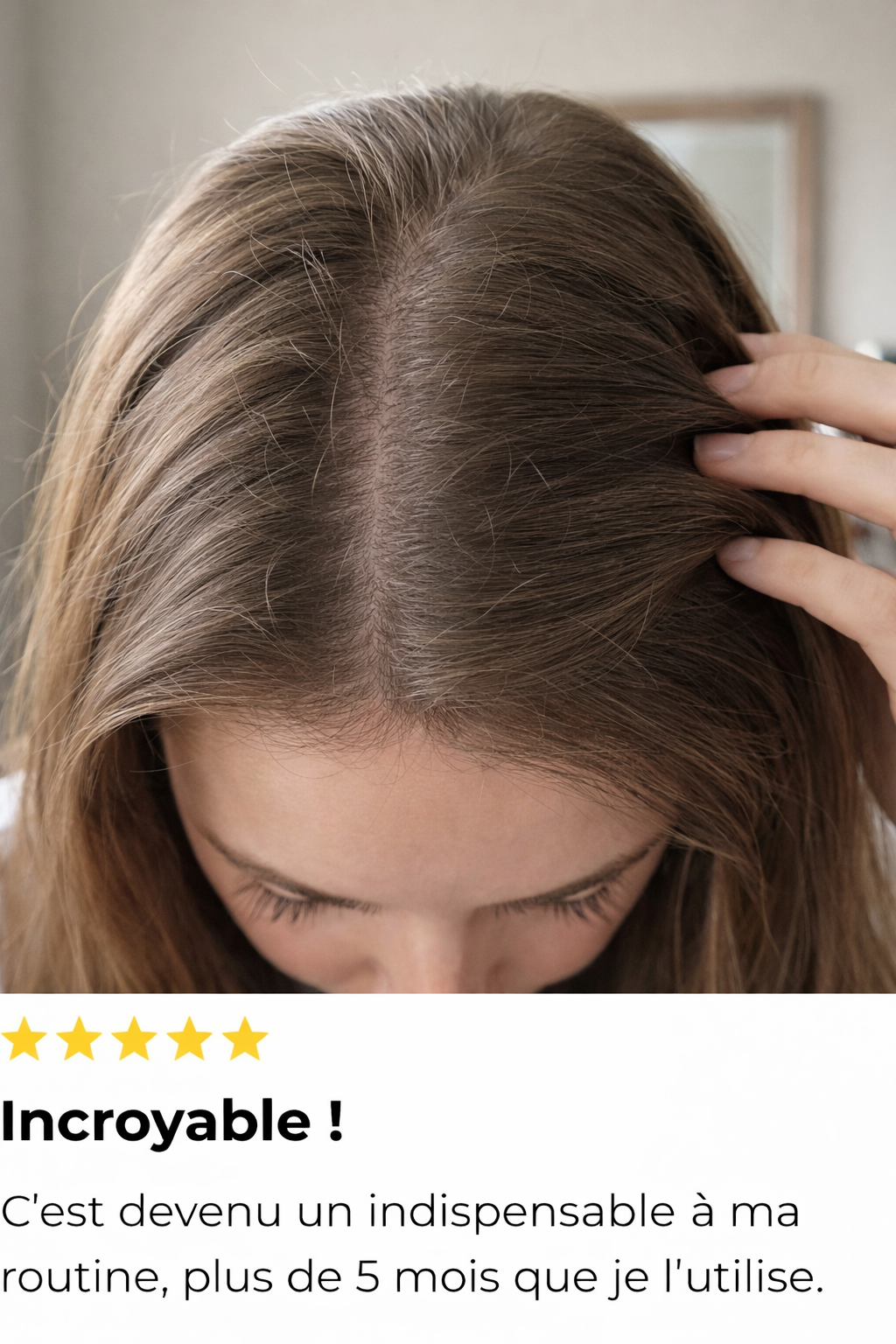 C'est une raie un peu plus visible. Un volume moins présent sur les photos. Un doute qui s'installe. La plupart des produits vous demandent d'attendre. Nous avons créé une routine pour agir.